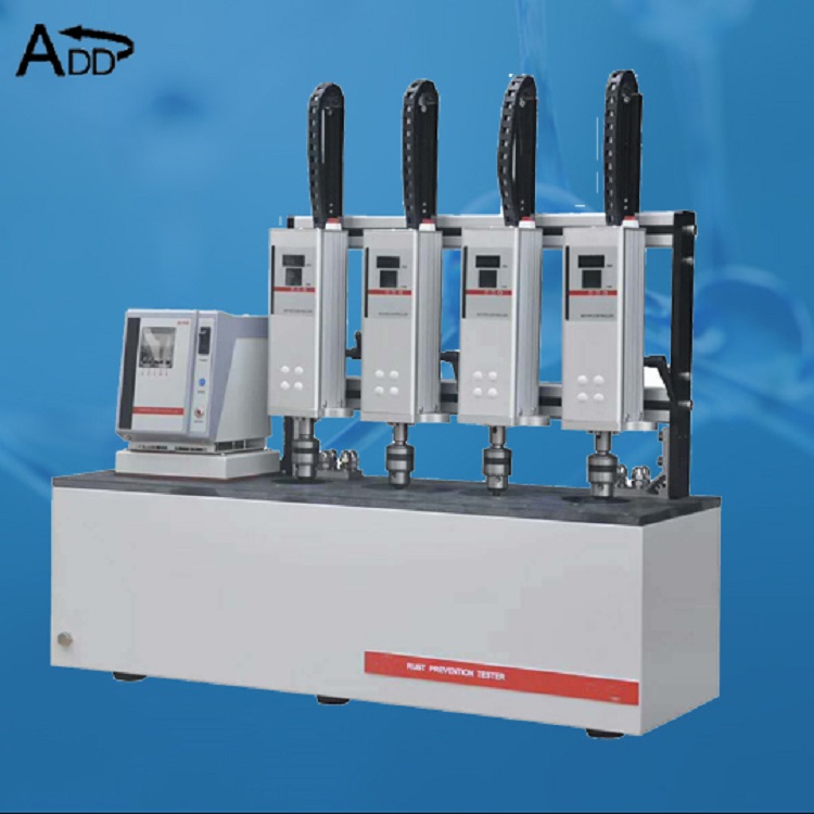 防銹性能實驗儀也適合檢測其他油品,例如液壓油、循環油以及水比重的液體。 其操作原理是:將一定量的試樣和蒸餾水或合成海水混合,把圓柱形的試樣鋼棒全部浸在其中,在一定溫度下進行攪拌。試驗周期(通常為2周)結束后觀察試樣鋼棒銹蝕的痕跡和銹蝕的程度。